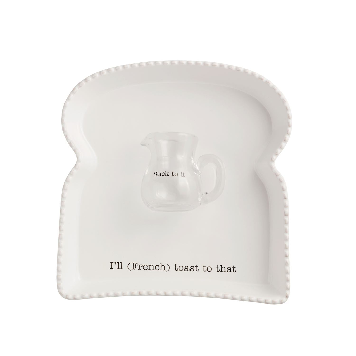 2-piece set. Toast shaped platter with beaded rim. Comes with syrup pitcher.